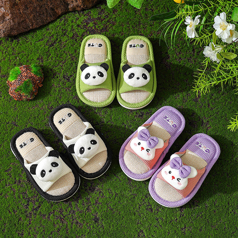 儿童亚麻拖鞋春秋男童室内居家用防滑卡通女童宝宝男孩夏季布拖鞋