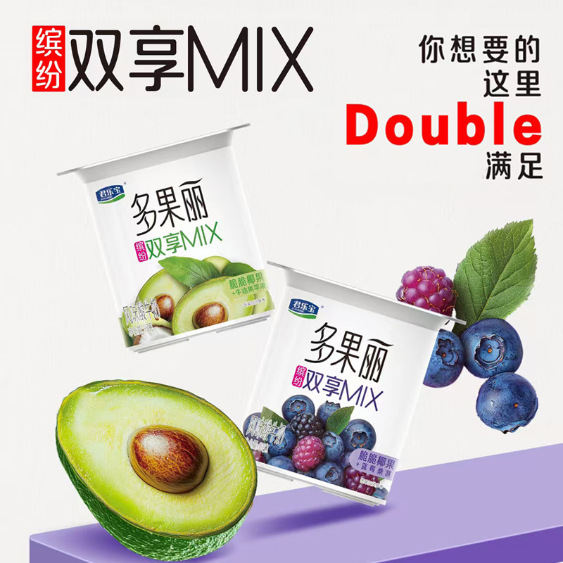 君乐宝联杯酸奶牛油果蓝莓双拼8杯+多果丽草莓联杯酸奶90g*16杯