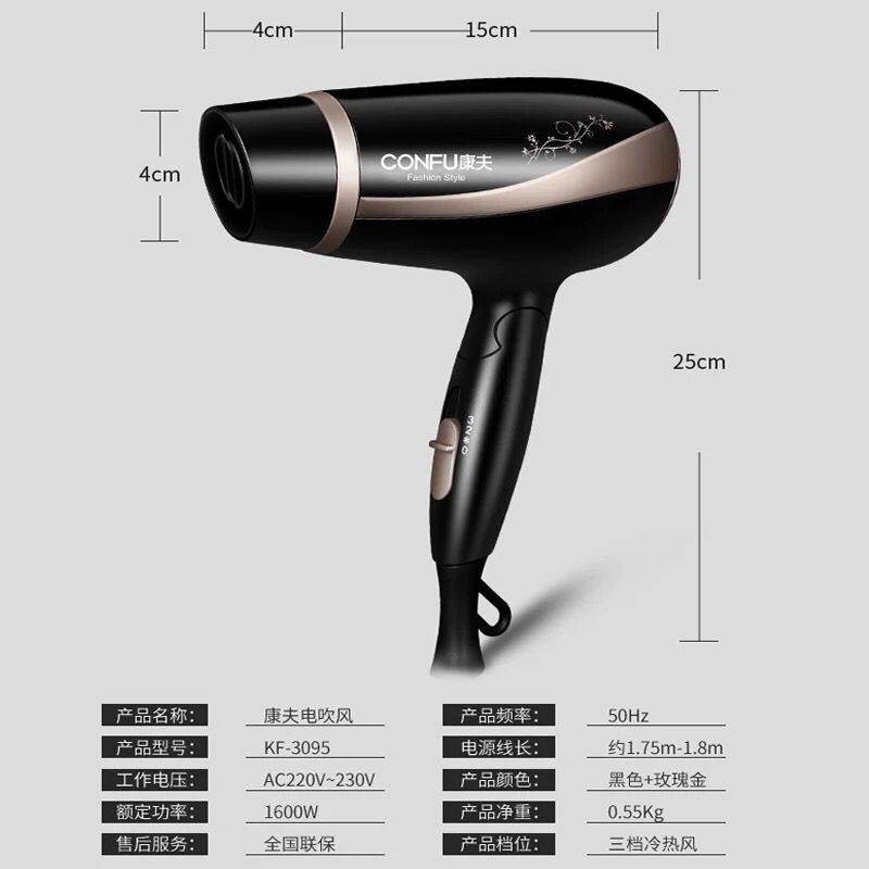 康夫电吹风机KF-3095家用折叠1600W功率学生宿舍便携式负离子护发