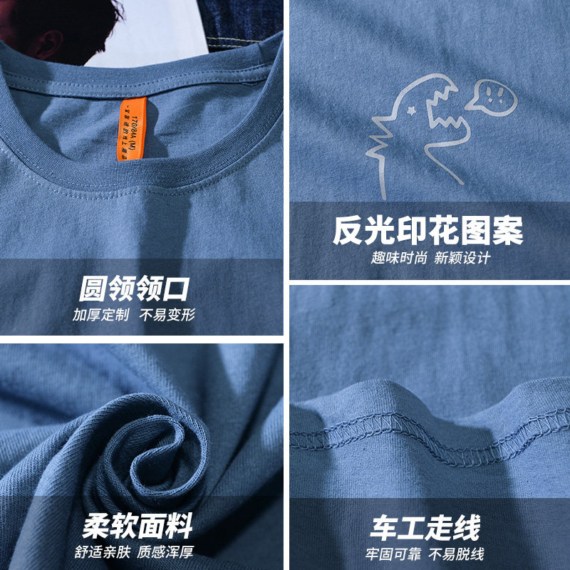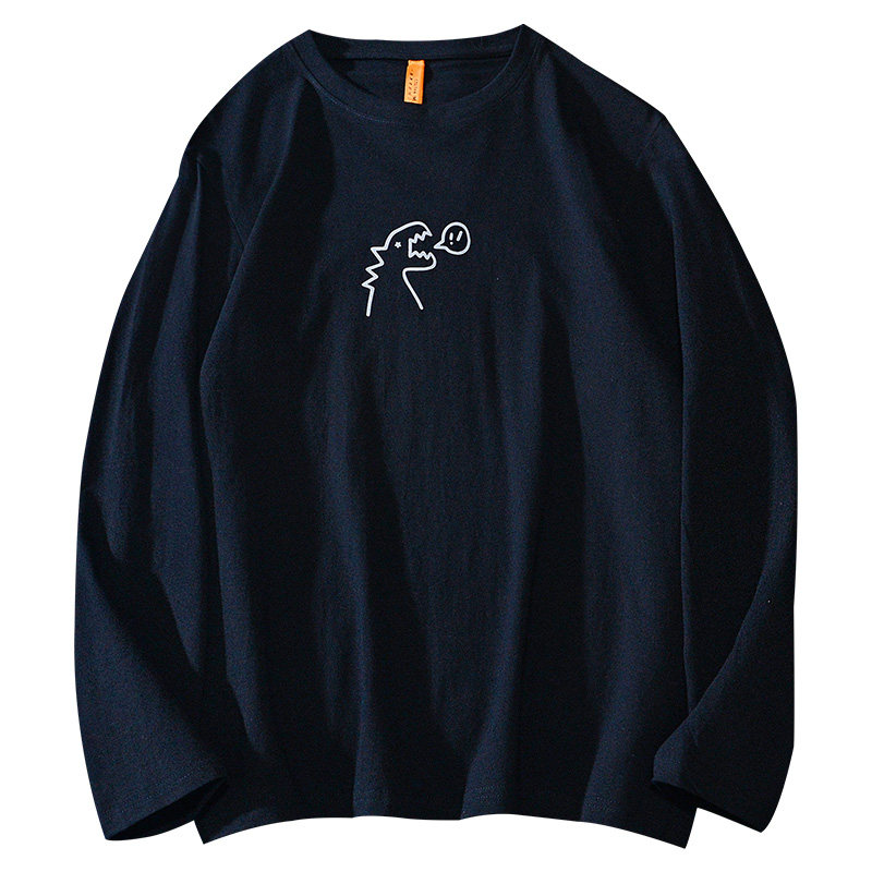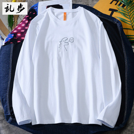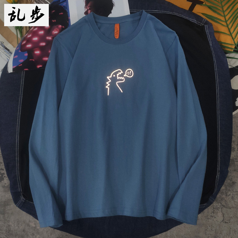 220g纯棉长袖t恤男宽松港风内搭打底衫恐龙反光上衣服学生情侣装