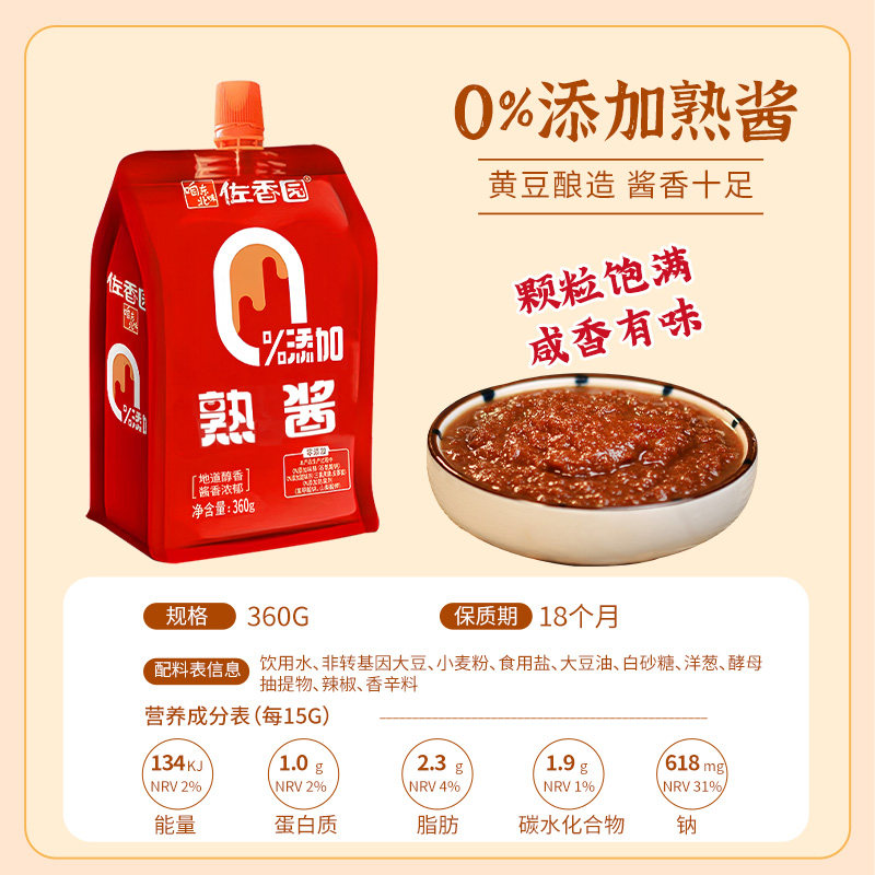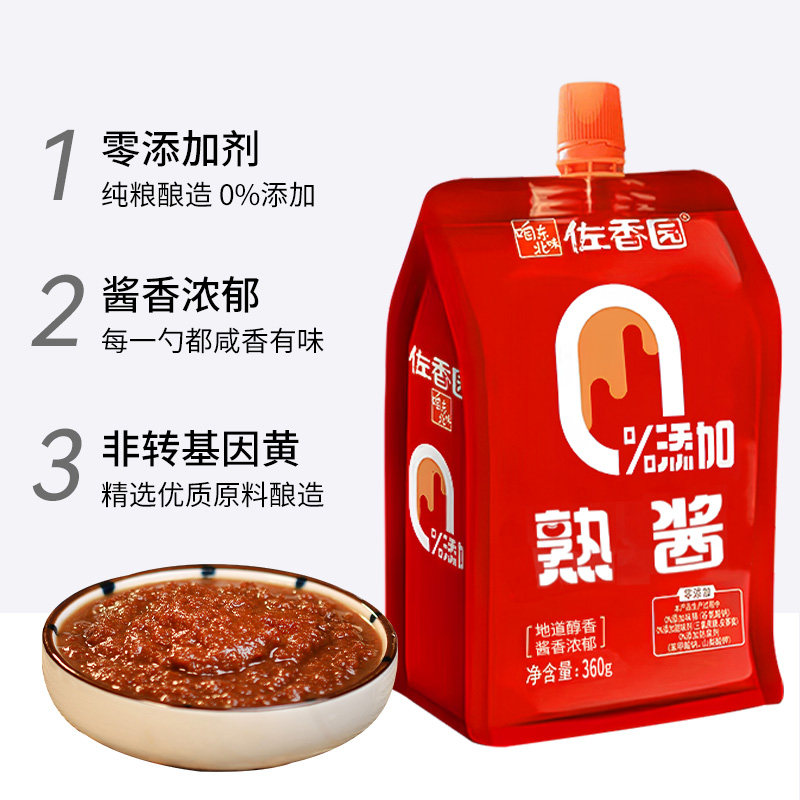 佐香园零添加熟酱360g*5袋东北大酱黄豆酱蘸菜酱豆瓣酱即食下饭酱