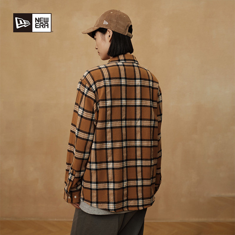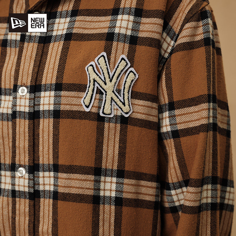 New Era纽亦华秋冬新款MLB复古格纹NY刺绣格子衬衫男女文艺学院潮