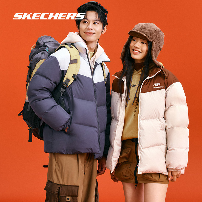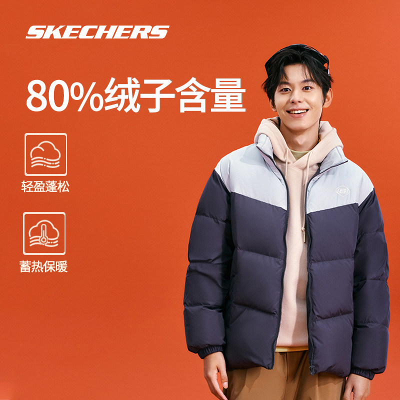 Skecehrs斯凯奇官网正品羽绒服秋冬男女同款潮流立领短款保暖外套