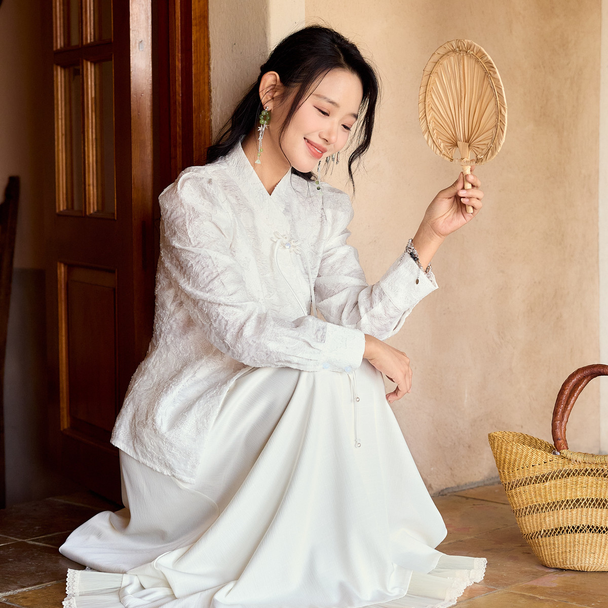 西町村屋中式国风感提花长袖小衫