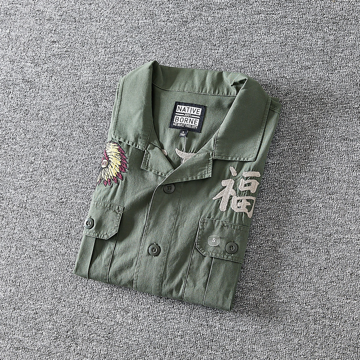 重工刺绣工艺!出口北美!外贸男装夏季古巴领舒适休闲短袖衬衫潮