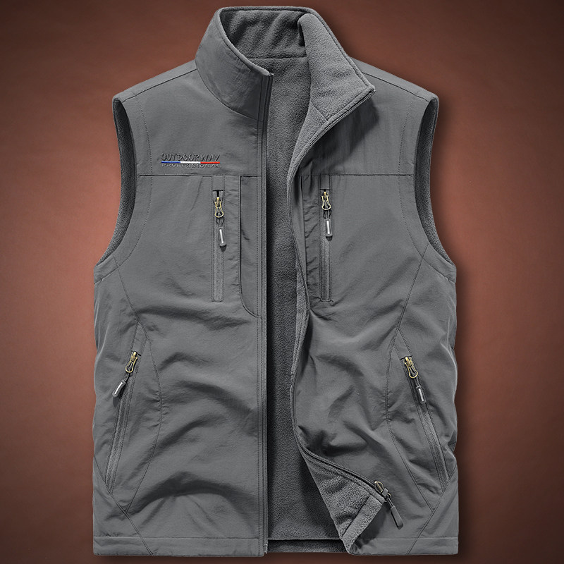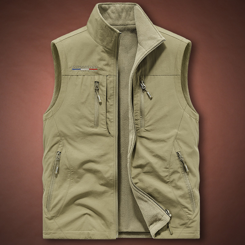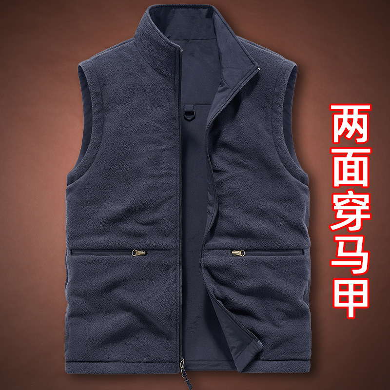 马甲男加绒秋冬保暖外穿背心外套立领多口袋工装摇粒绒双面穿马夹