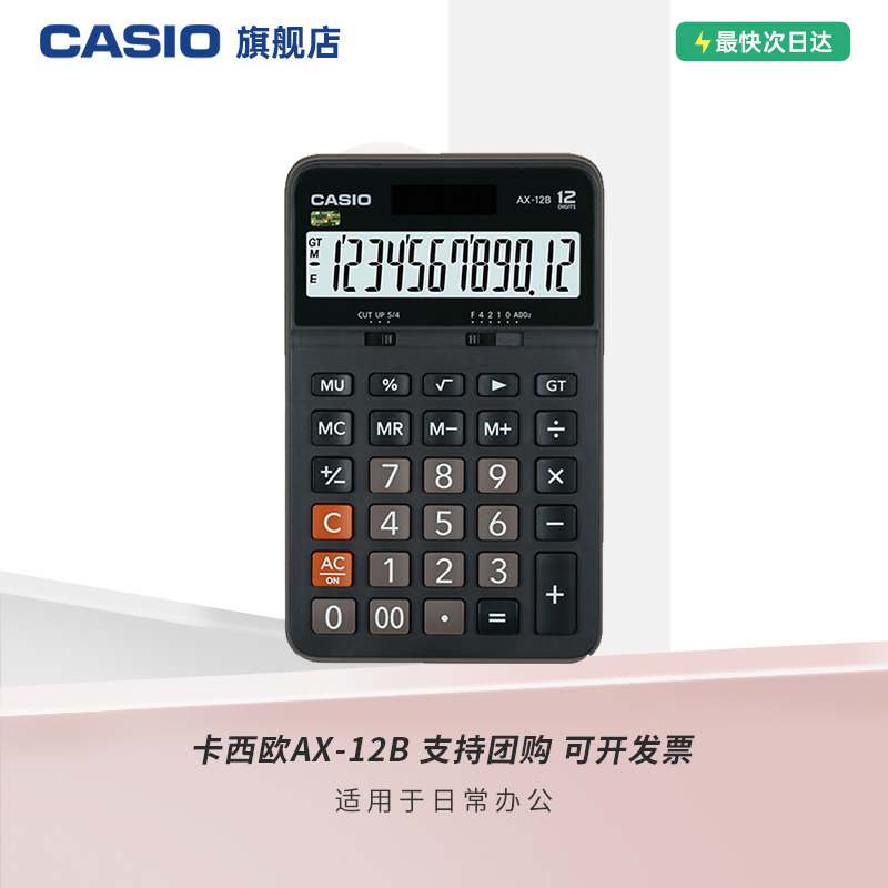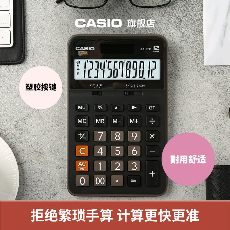 casio/卡西欧AX-12B非语音计算器学生财务会计小号办公用品文具商务送礼台式计算机