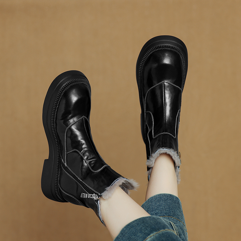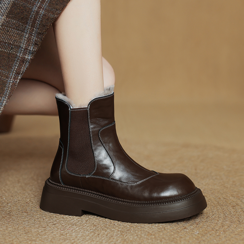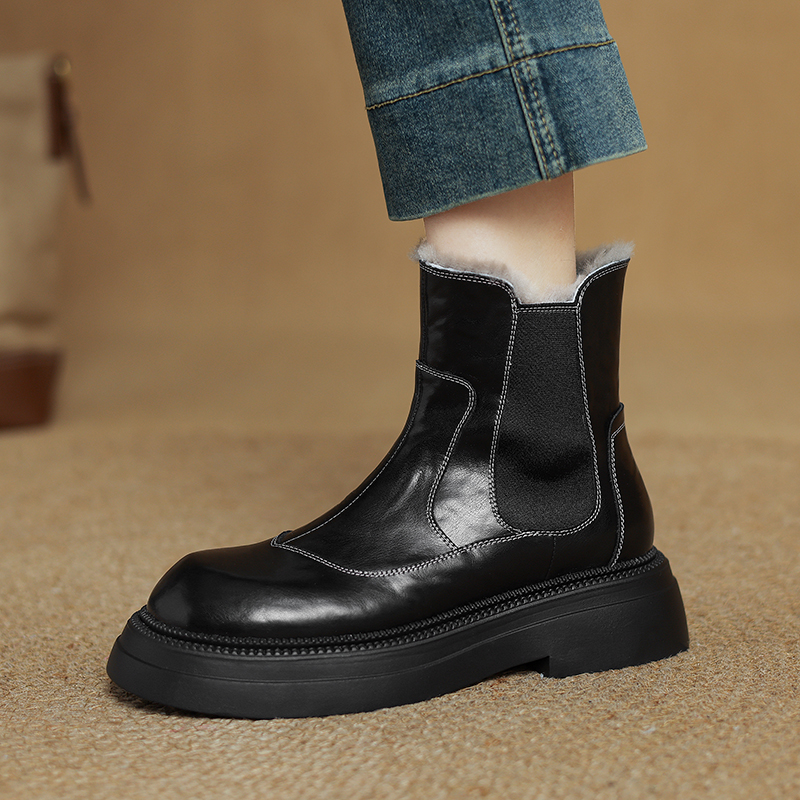 4.5cm真皮加厚羊毛雪地靴女2025新款厚底切尔西靴保暖加绒短靴子