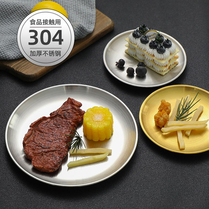 304韩式不锈钢圆盘金色家用托盘 水果盘骨碟菜盘烧烤盘烤肉浅盘子