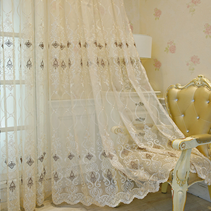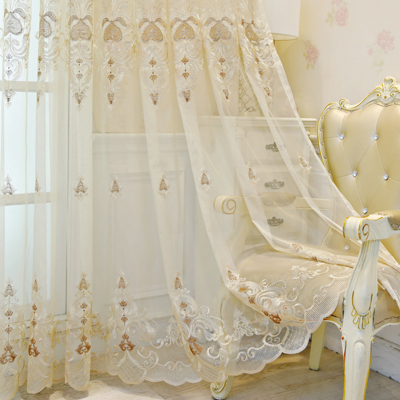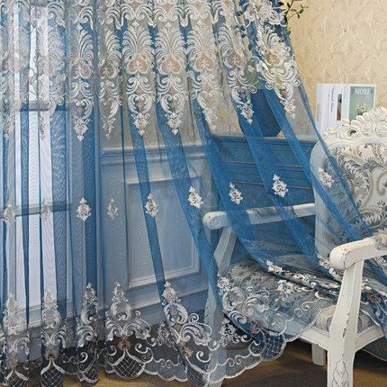 欧式蓝色绣花窗帘纱阳台卧室隔断定制客厅纱帘别墅大气成品飘窗纱