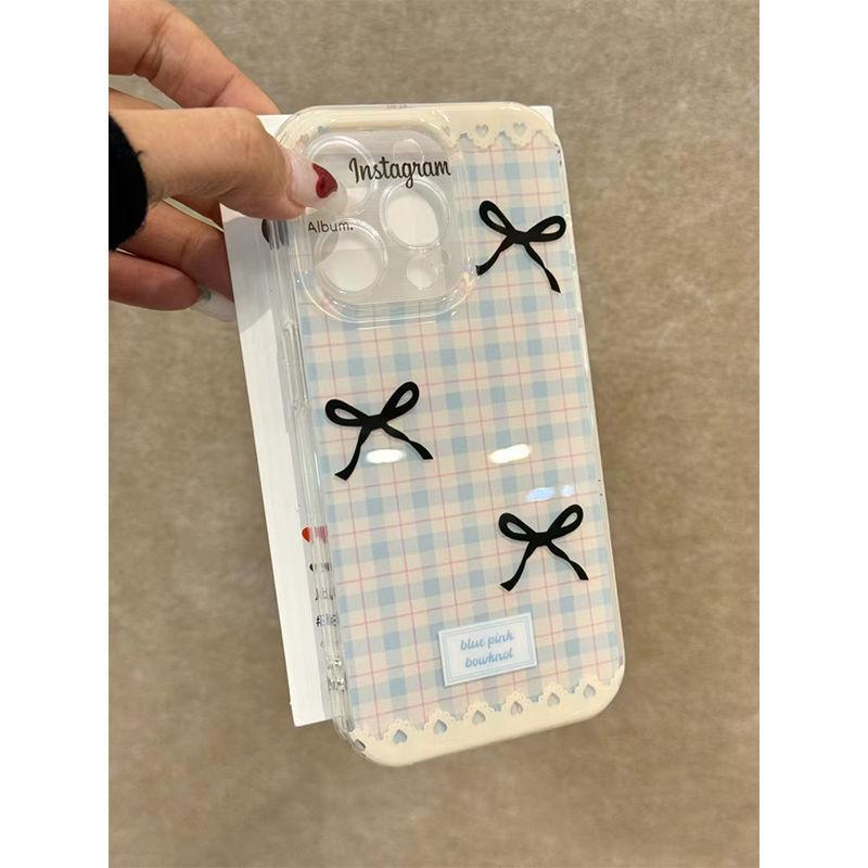 蝴蝶结格子适用苹果15手机壳iPhone16Promax卡通vivox100透明红米note13防摔一加套pura70小米14OPPO荣耀200