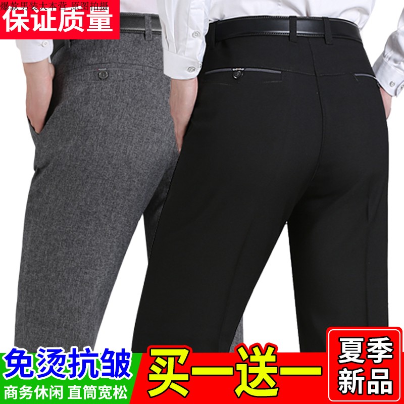 夏季西裤男直筒宽松薄款休闲裤男商务正装爸爸裤子中老年人男长裤