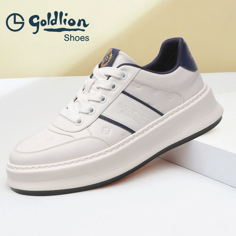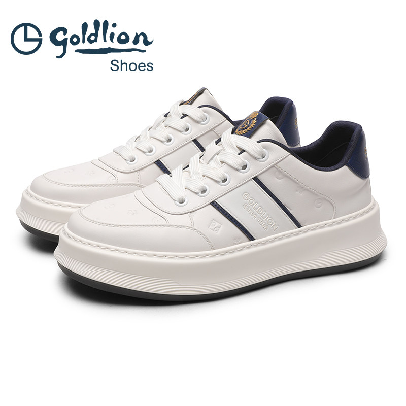 金利来男鞋秋冬新款休闲皮鞋拼色低帮厚底增高舒适板鞋小白鞋
