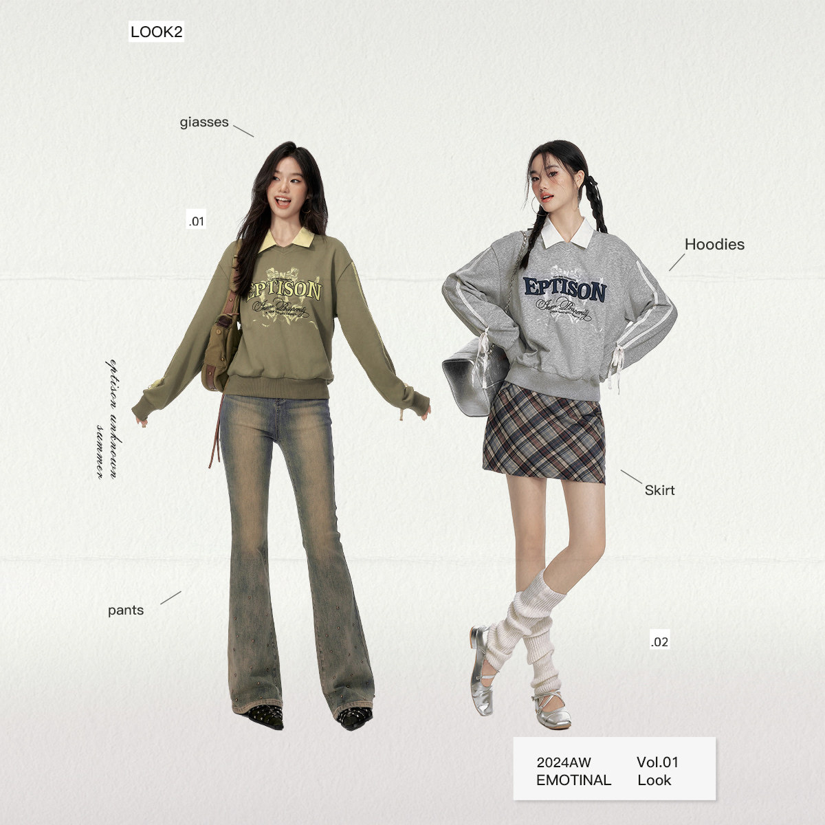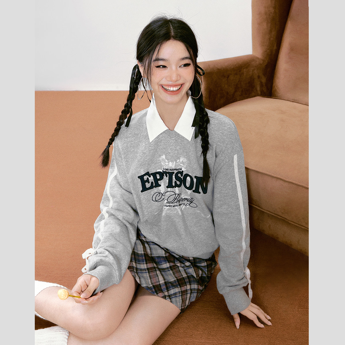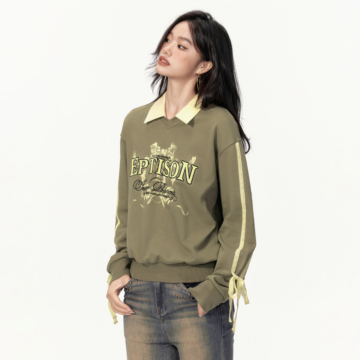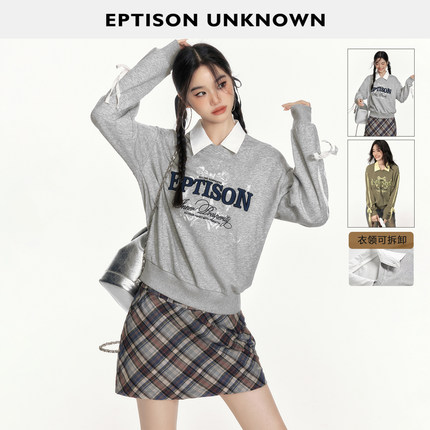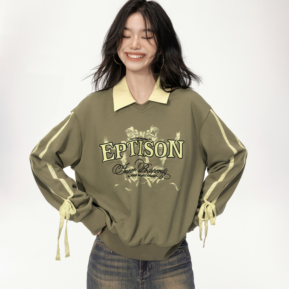 【69/件】EPTISON卫衣女2025秋季新款宽松复古蝴蝶结印花慵懒上衣