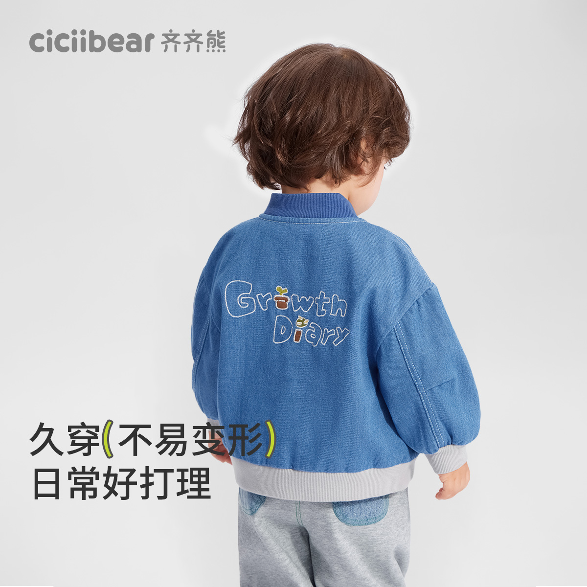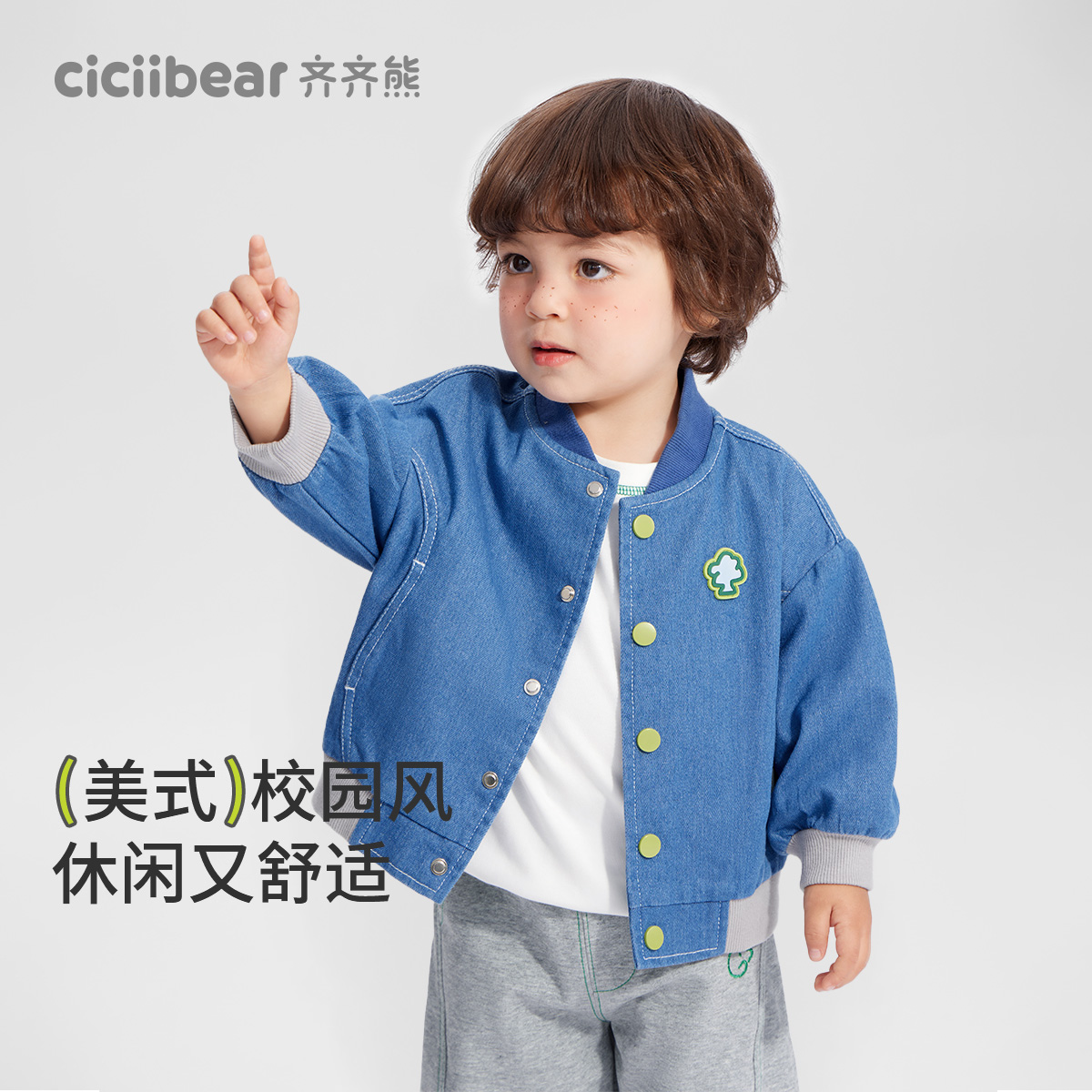 齐齐熊宝宝亲肤软牛仔棒球服外套