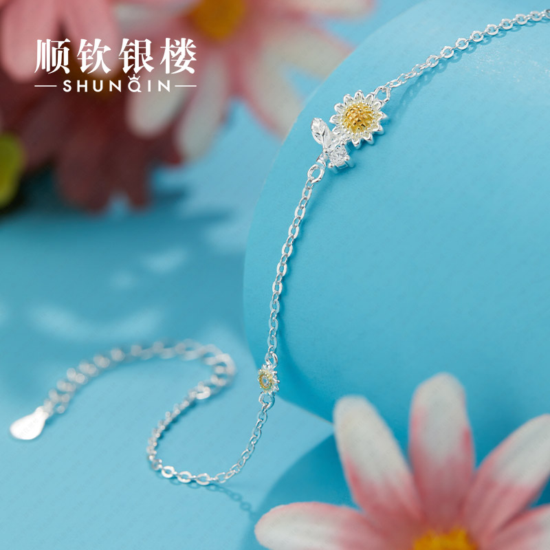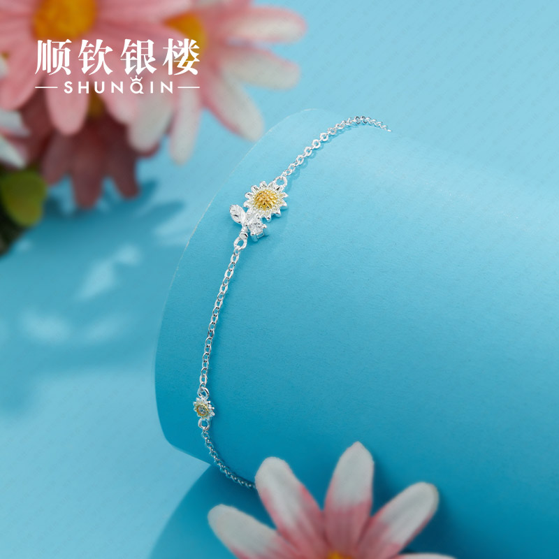 顺钦银楼纯银手链女设计感春日花花足银手饰2025新款向阳花好运