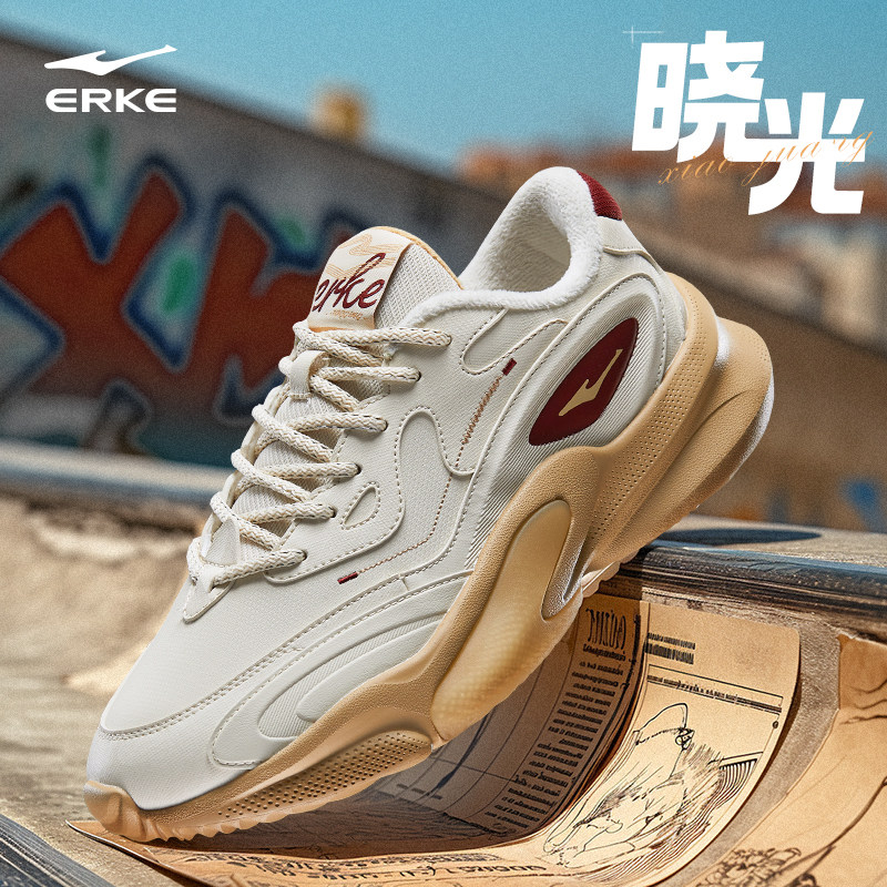 鸿星尔克男鞋秋冬季新款皮面防水休闲鞋减震运动鞋加绒棉鞋老爹鞋