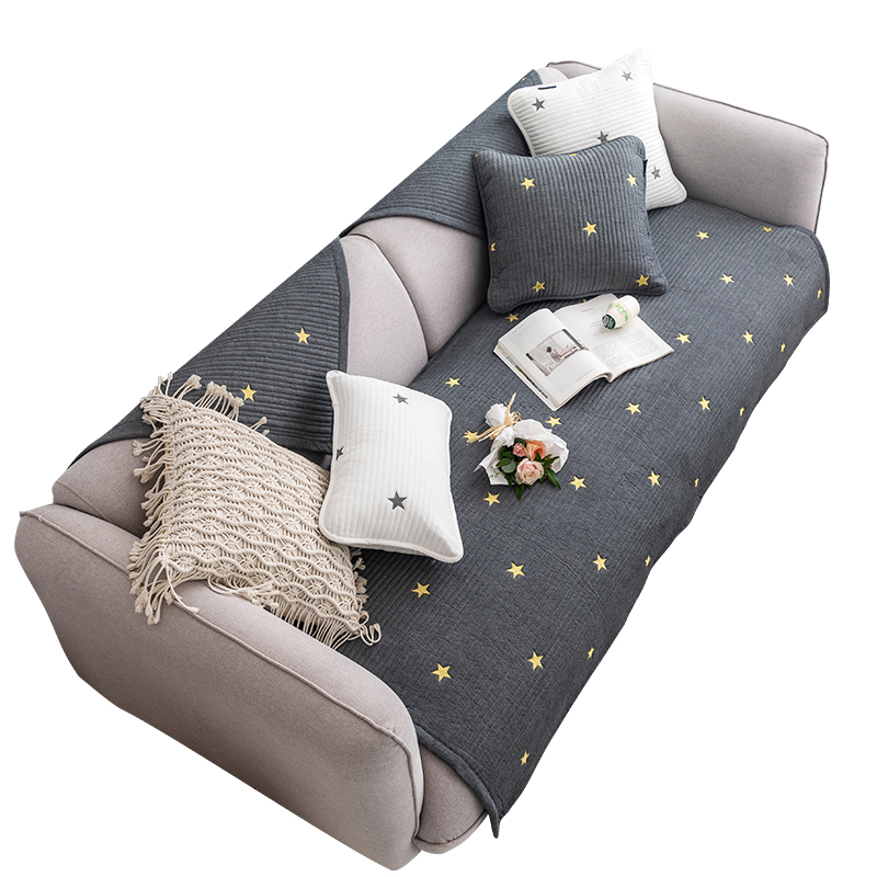 北欧ins 全棉刺绣沙发垫子四季通用防滑坐垫套罩纯棉布艺加厚靠背