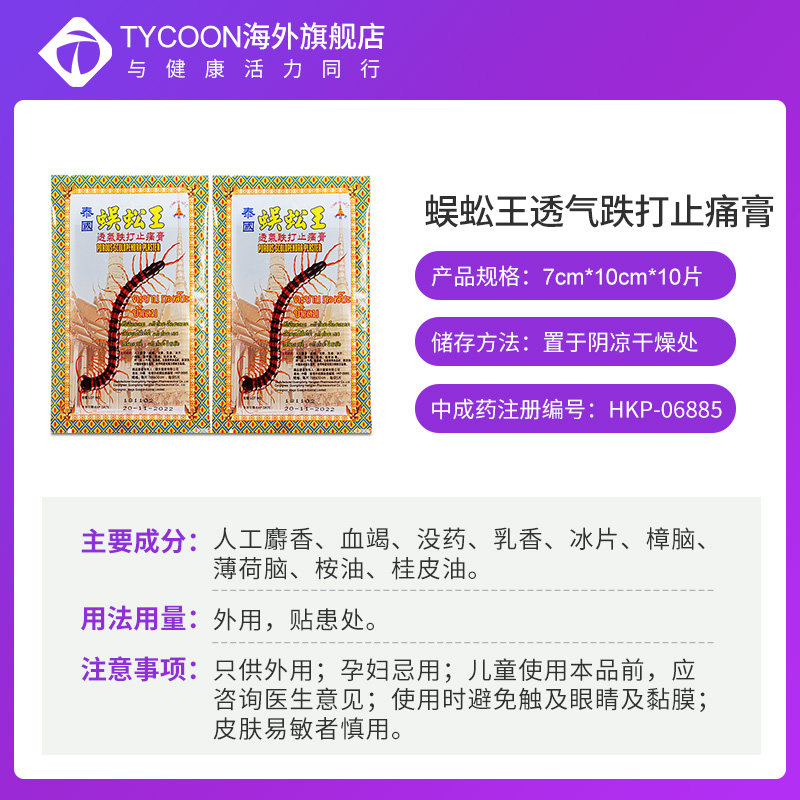泰国蜈蚣王透气跌打损伤止痛贴膏药贴布进口风湿消炎止疼镇痛腰疼