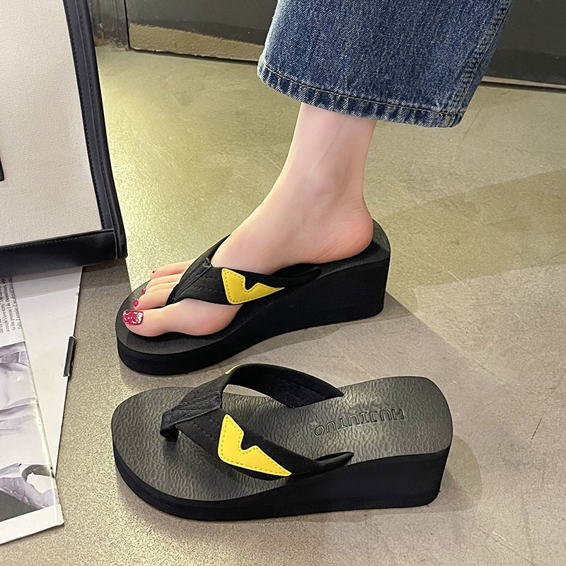 可爱小怪兽厚底坡跟高跟人字拖鞋