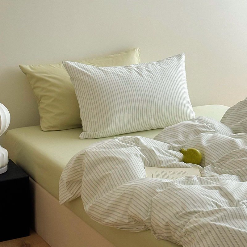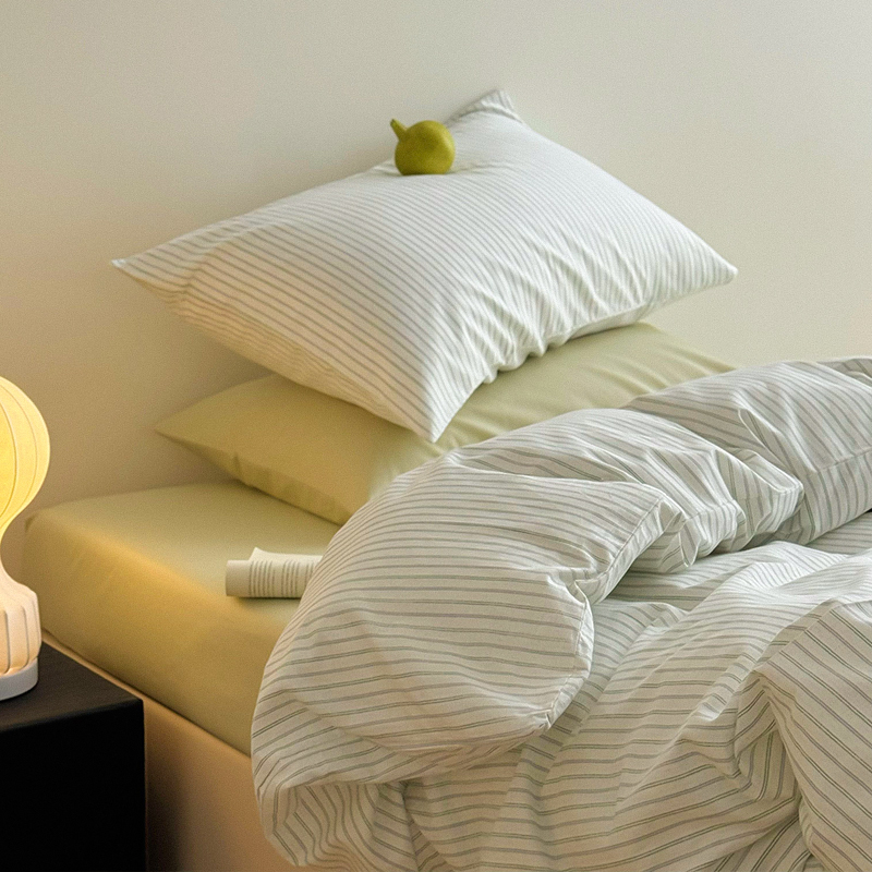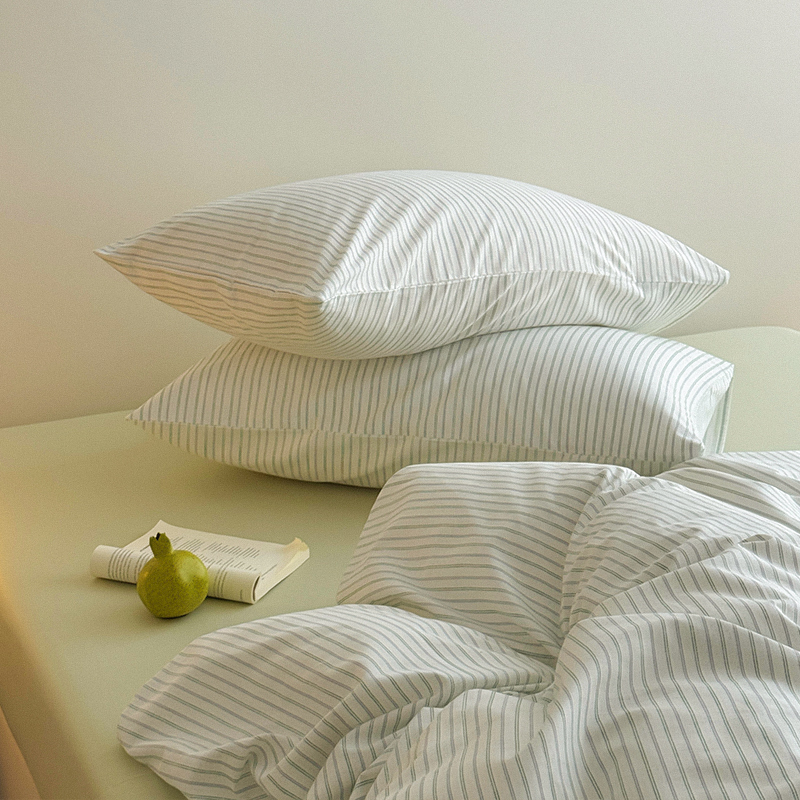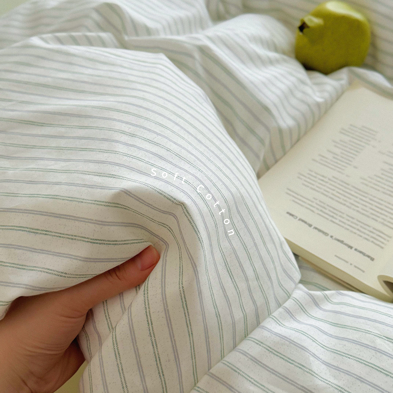 ins小清新简约绿条纹全棉纯棉被套单件1.5米床上三四件套宿舍被罩