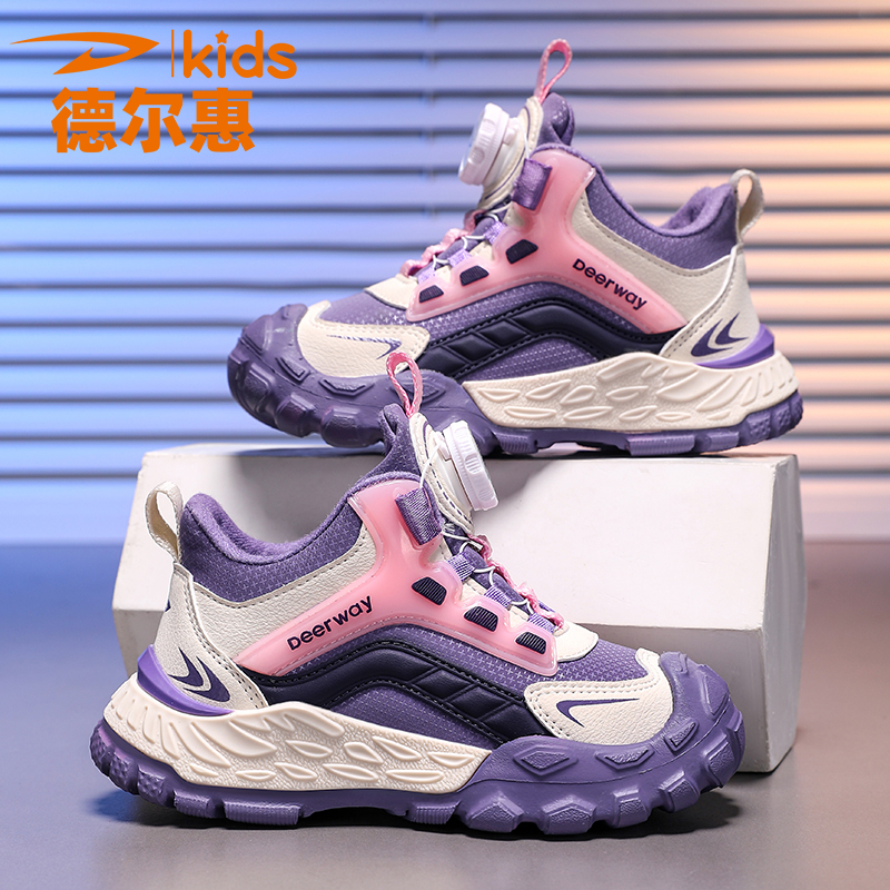 德尔惠儿童运动鞋2025冬季新款男童跑步鞋中大童纽扣加绒保暖棉鞋