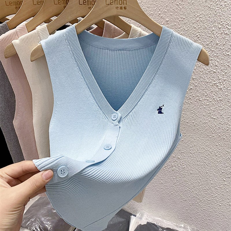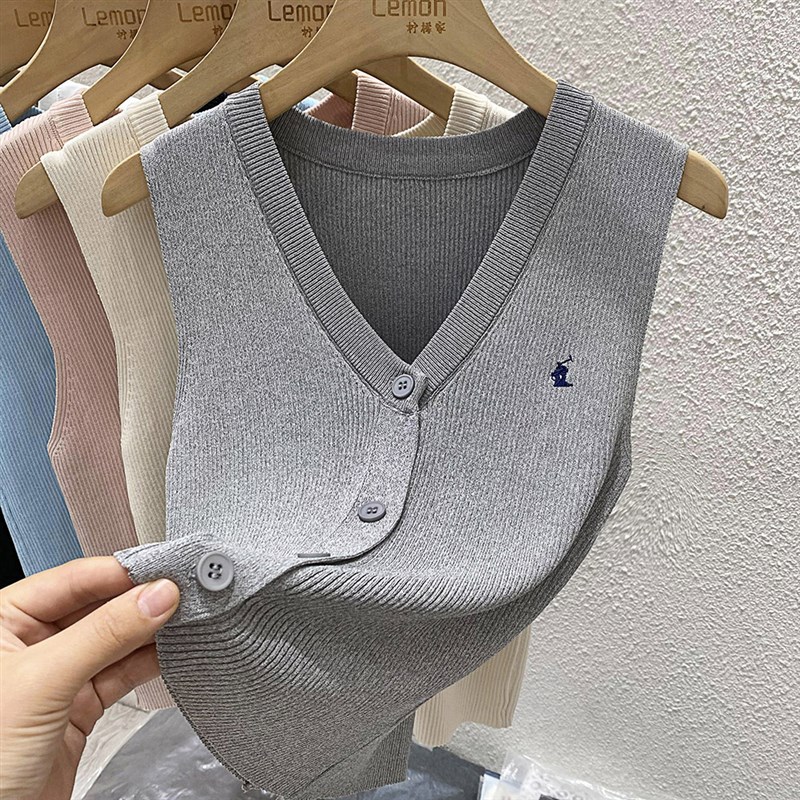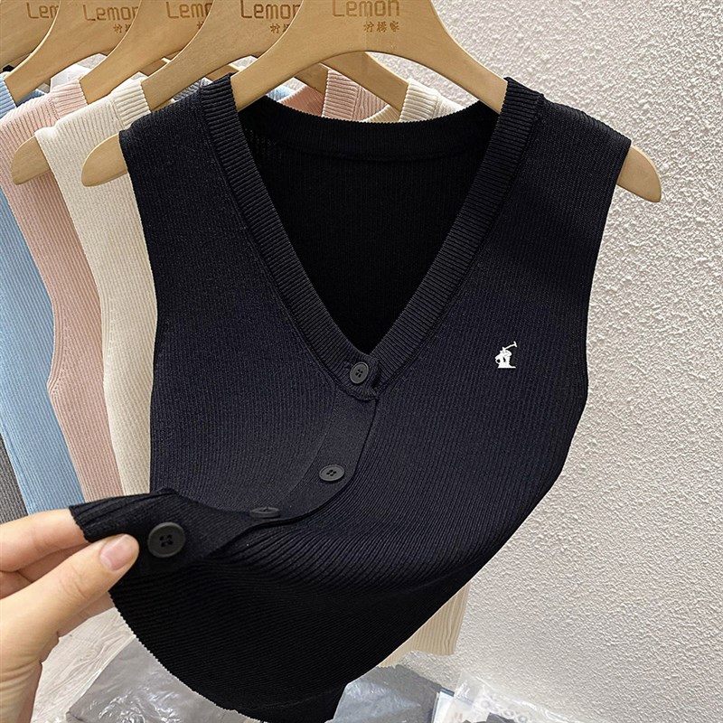 2024Vd领修身打底衫吊带背心女夏季内搭外穿冰丝针织开衫无袖上衣