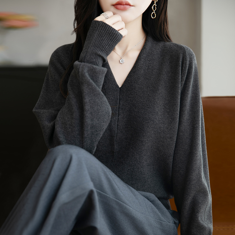 秋冬双开V领针织打底衫女2025新款春秋洋气上衣大码女装秋冬毛衣