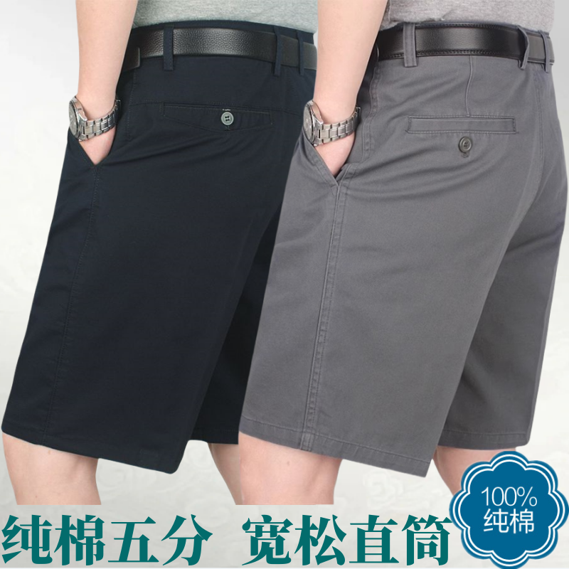 中老年男士大码五分裤爸爸夏季休闲裤薄宽松双褶纯棉水洗西装短裤