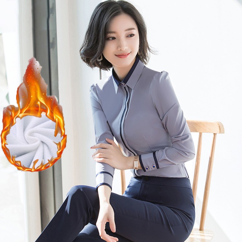 加绒衬衫女职业装长袖2021冬季保暖加厚加棉白衬衣工作服修身显瘦