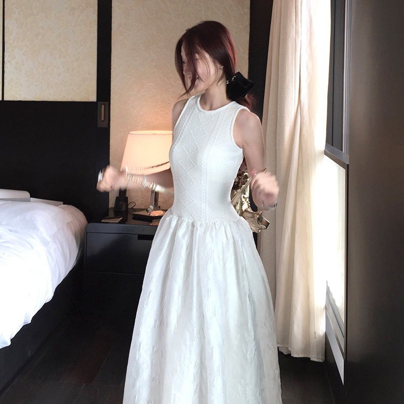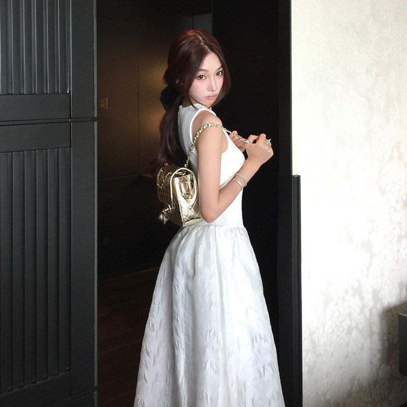 Boamarket白色背心连衣裙女夏季法式优雅浪漫高级感长款蓬蓬裙子