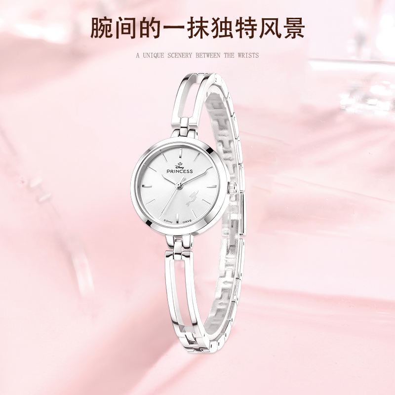 迪士尼正品手镯式石英腕表女士轻奢小众简约气质送女友情人节礼物