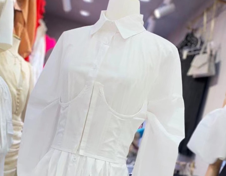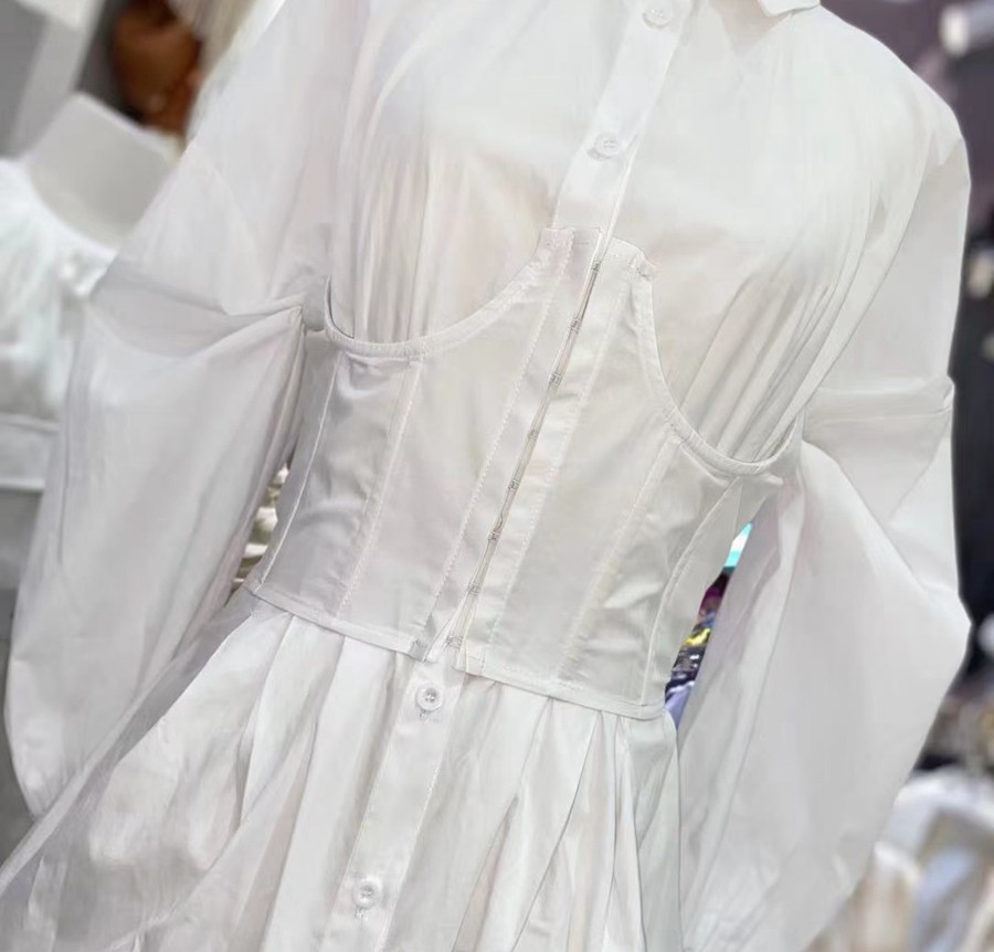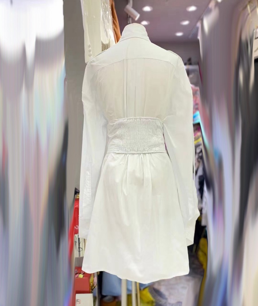 优物城法式小众秋冬新款时尚白色衬衣连衣裙收腰腰封显瘦a字短裙