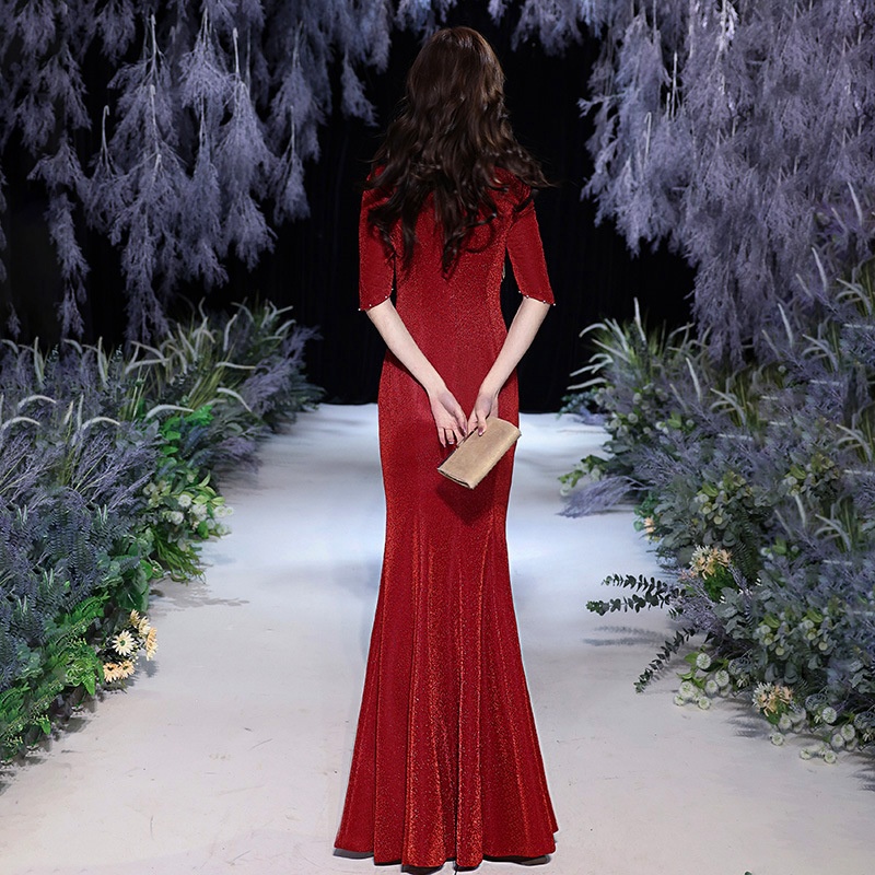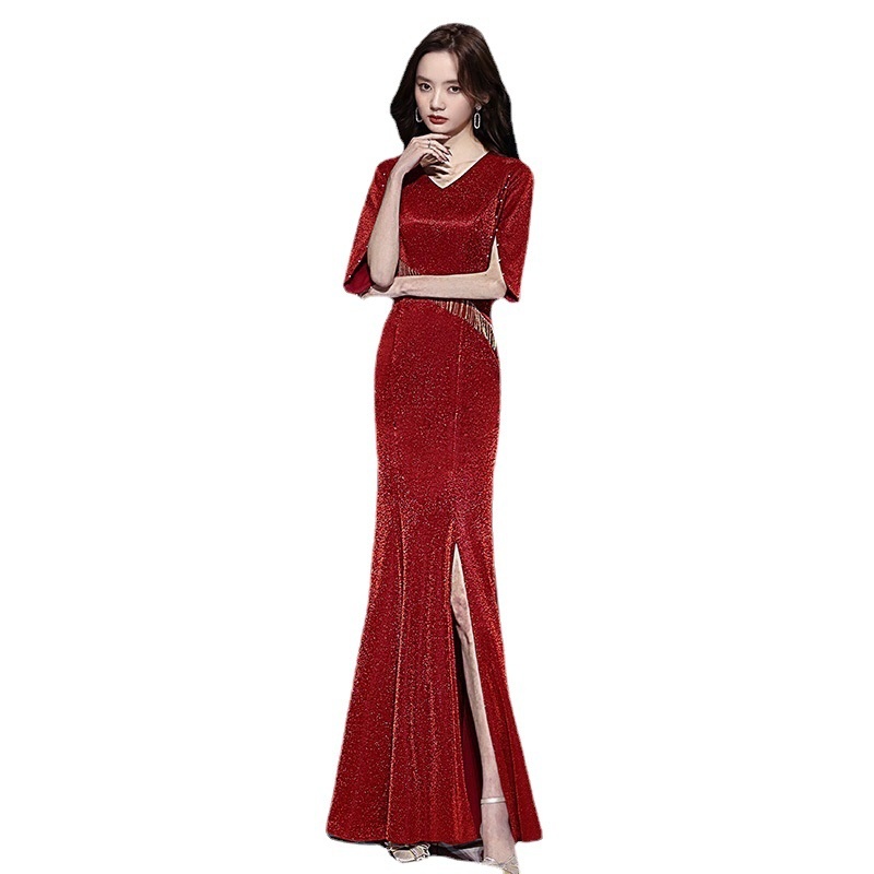 2025新款新娘敬酒服秋季名媛宴会气质端庄大气红色鱼尾晚礼服