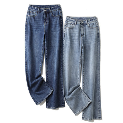 阿月大码宽松阔腿裤女2025春秋款加长175CM拖地裤高腰大直筒牛仔