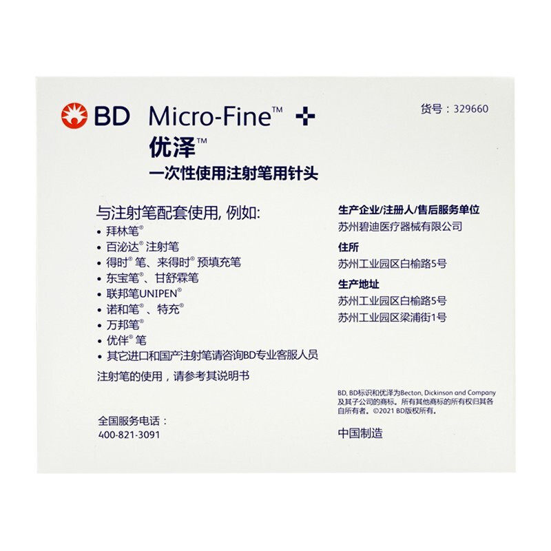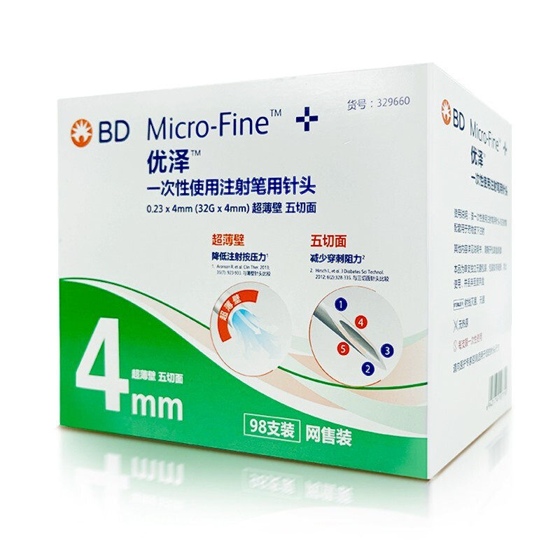 BD优泽优锐胰岛素针头4mm糖尿病注射笔一次性无菌低痛针头超薄壁