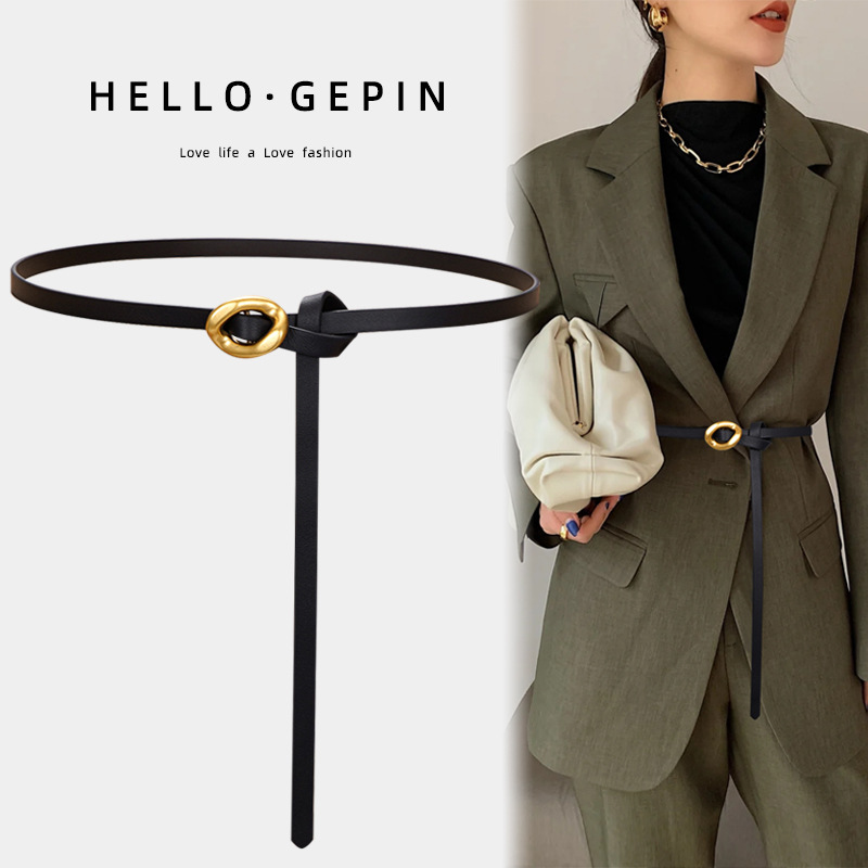 真皮细腰带女装饰西装配连衣裙子收腰2025新款百搭黑色毛衣小皮带