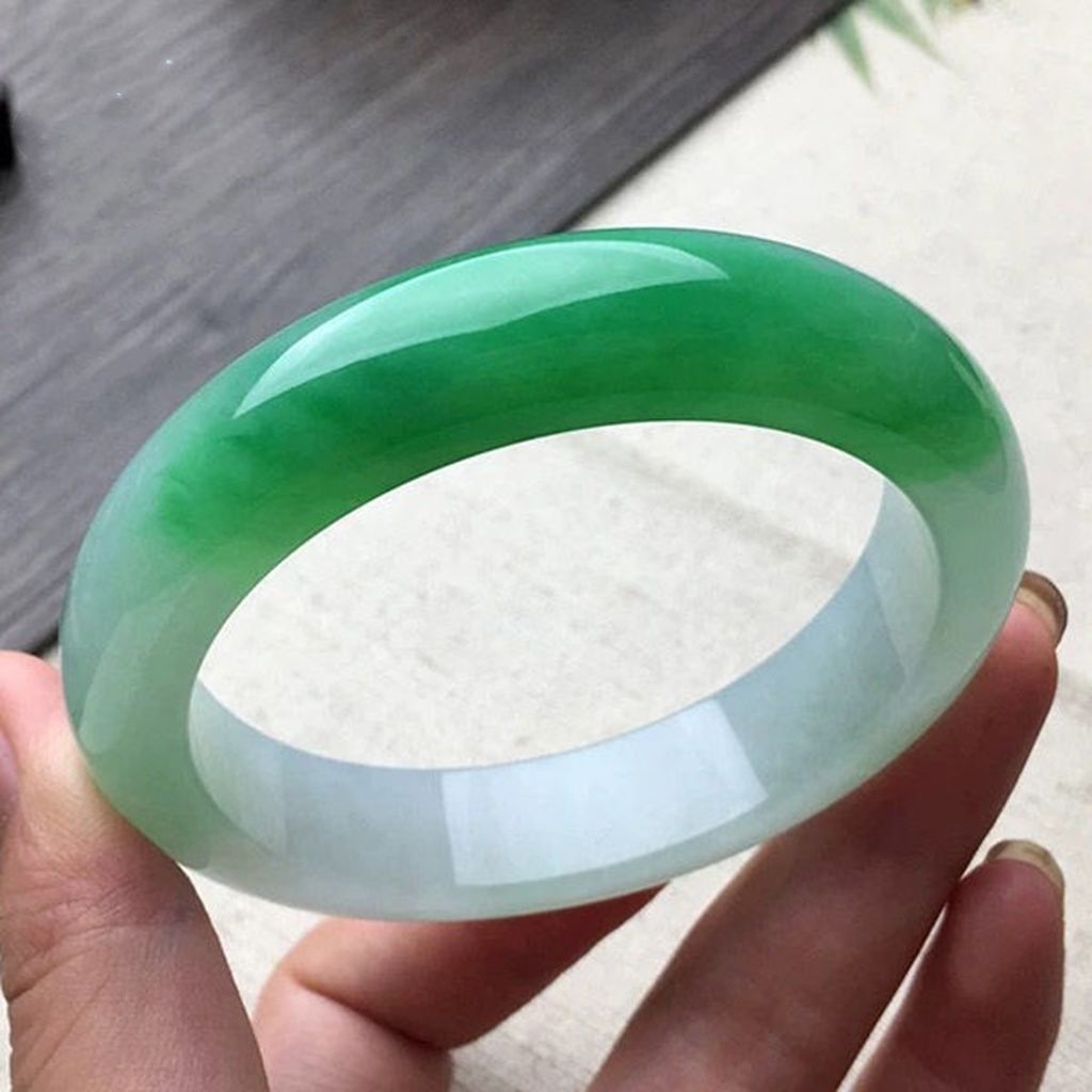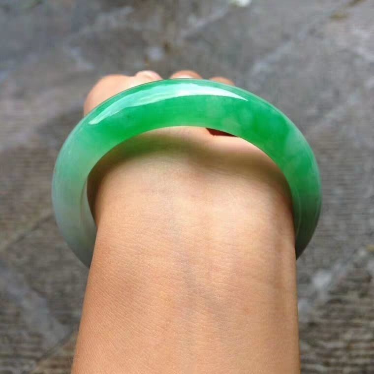 【顺丰包邮】缅甸天然翡翠正品糯种冰种玉石飘绿正圈贵妃圆条手镯