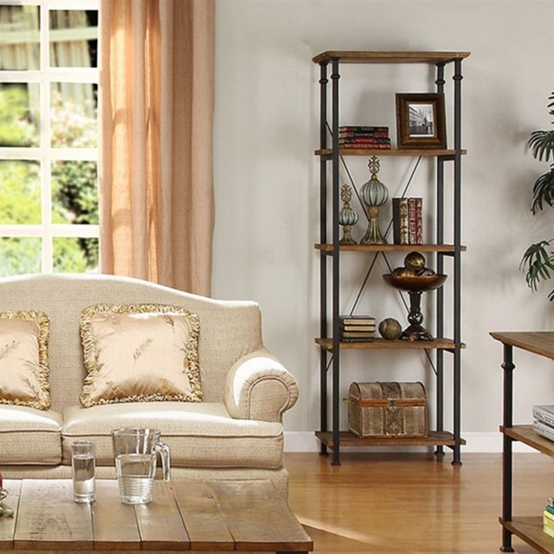 定制美式铁艺屏风隔断置物架实木书架钢木落地客厅原木多层收纳架