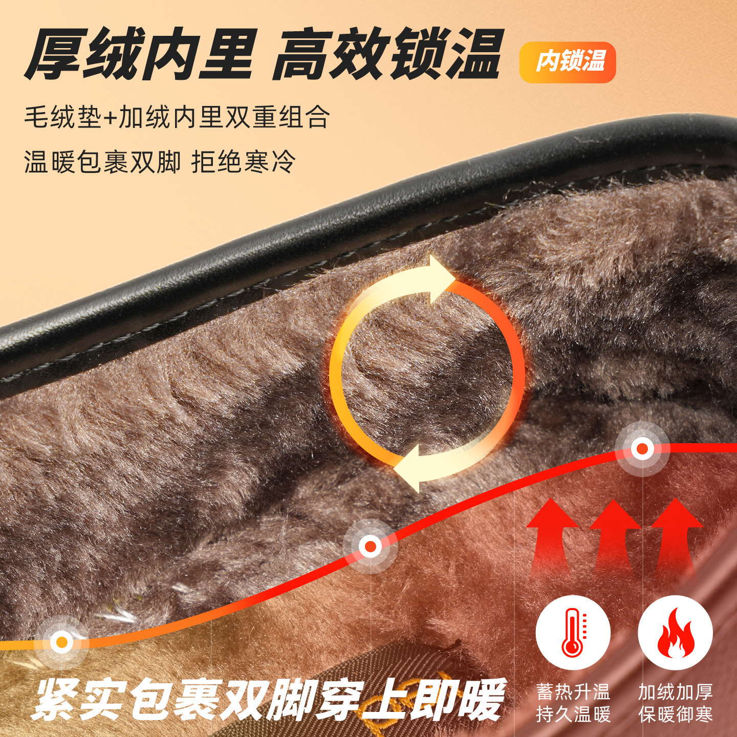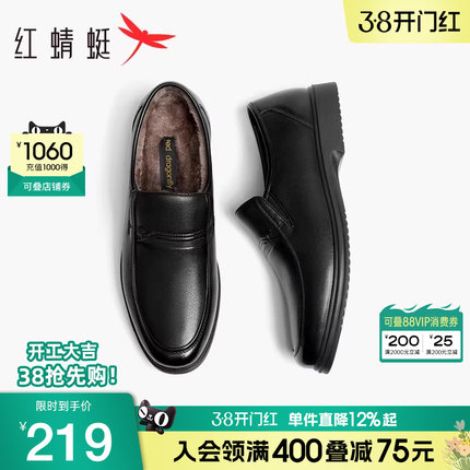 红蜻蜓男鞋冬季新款加绒保暖休闲棉鞋男士真皮中老年爸爸皮鞋男款
