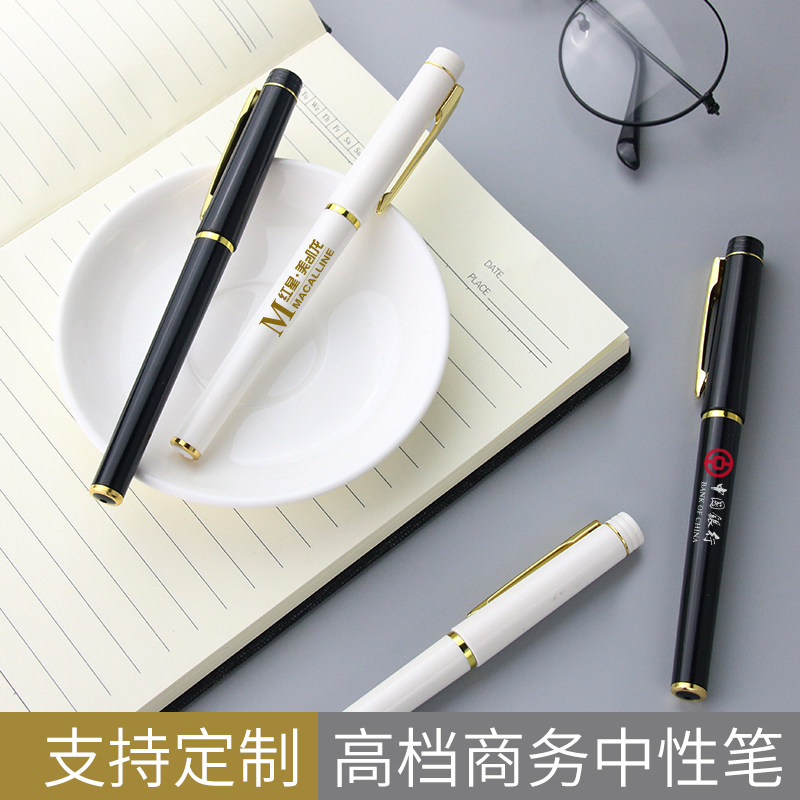 广告笔定制黑色签字笔定制中性笔印刷logo彩印金属笔夹碳素笔订做