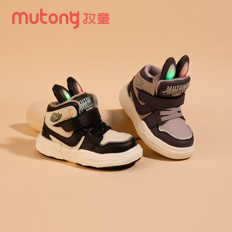 牧童童鞋冬季新款女童二棉鞋小童加绒保暖高帮板鞋男童闪灯运动鞋