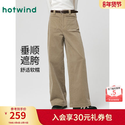 热风女士长裤宽松灯芯绒休闲裤2025年冬季新款时尚宽松阔腿长裤