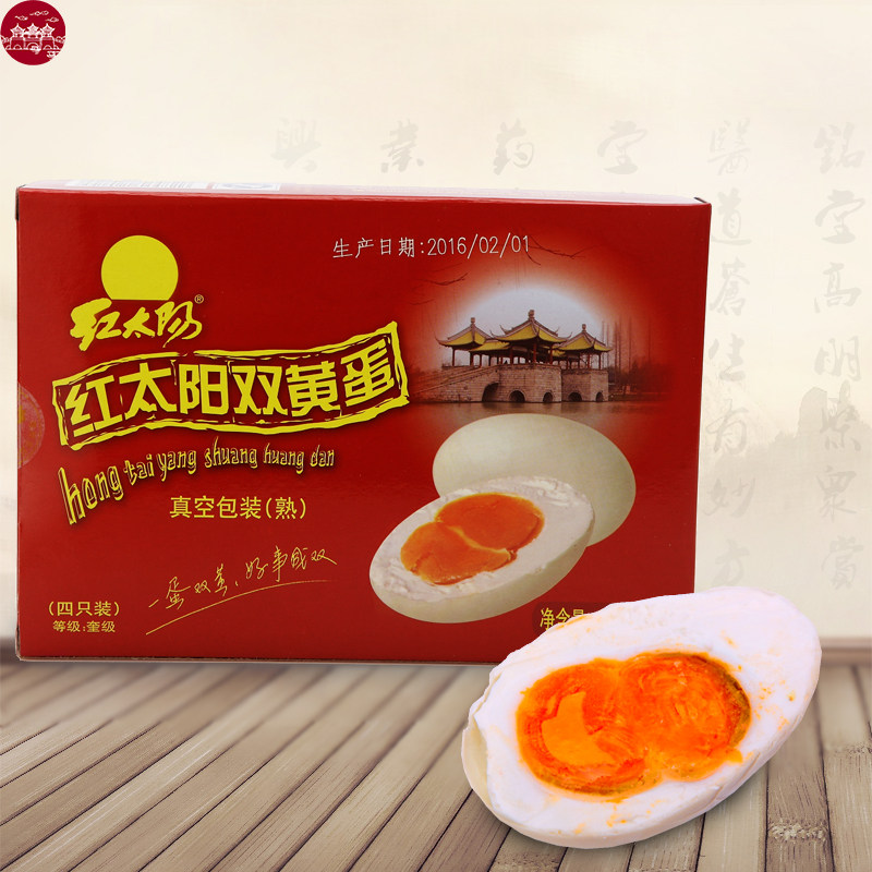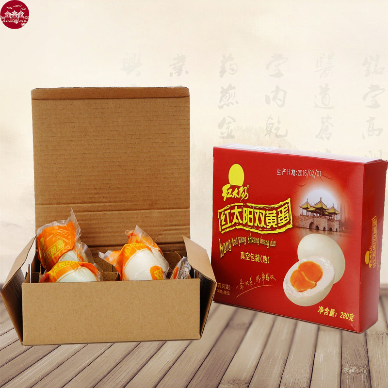 高邮红太阳双黄蛋咸鸭蛋四只盒装流油净含量280g真空包装开袋即食