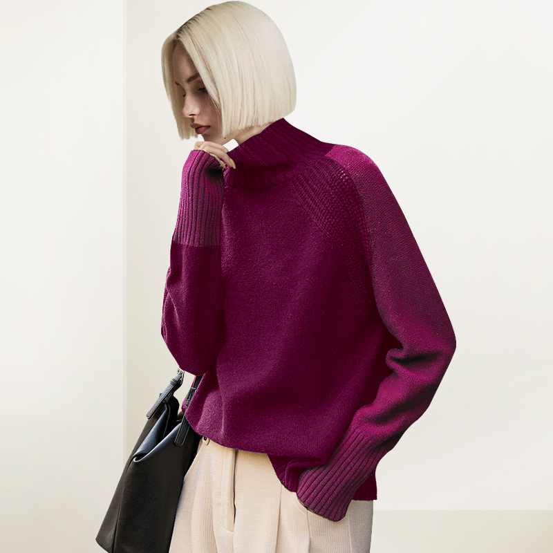 设计感撞色半高领显瘦毛衣女