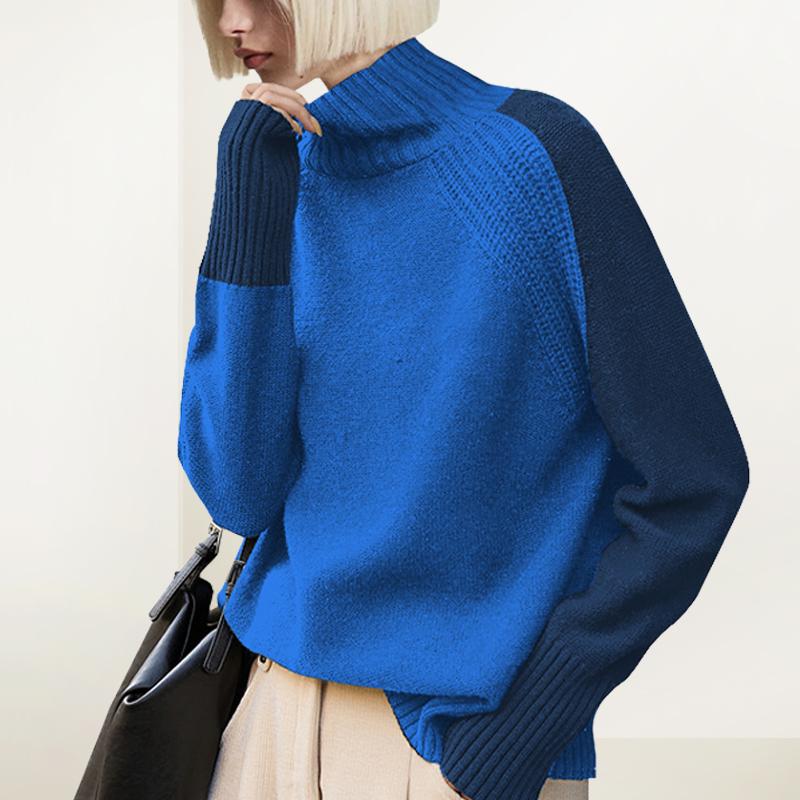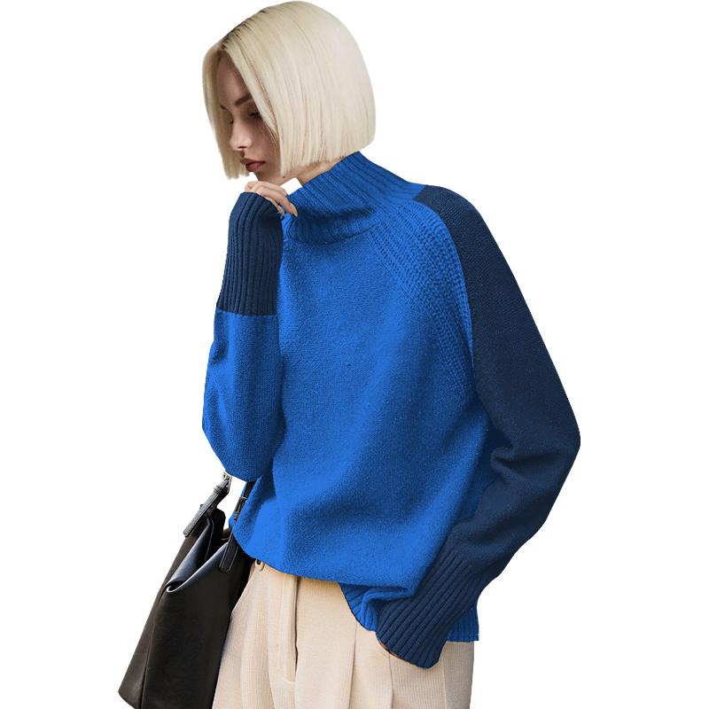半高领撞色毛衣女2025年冬季新款内搭宽松套头长袖针织拼接打底衫