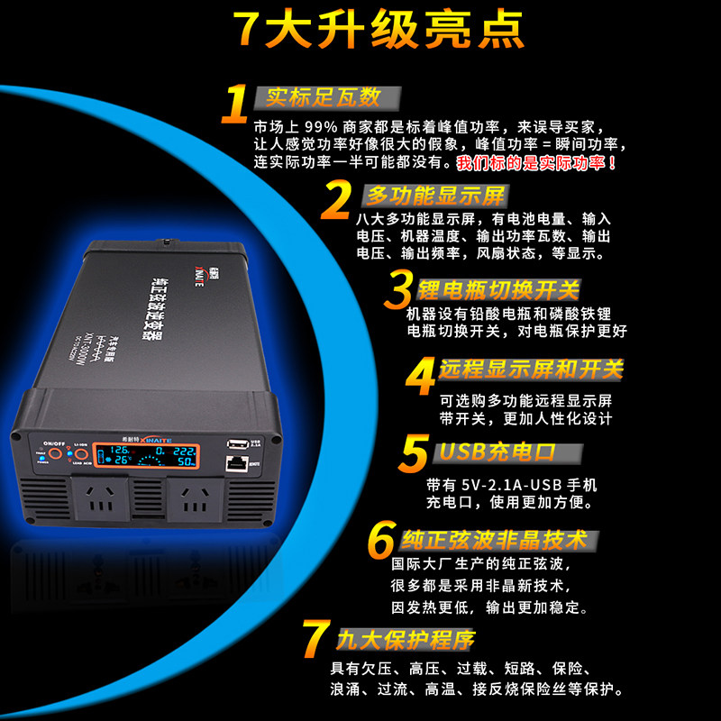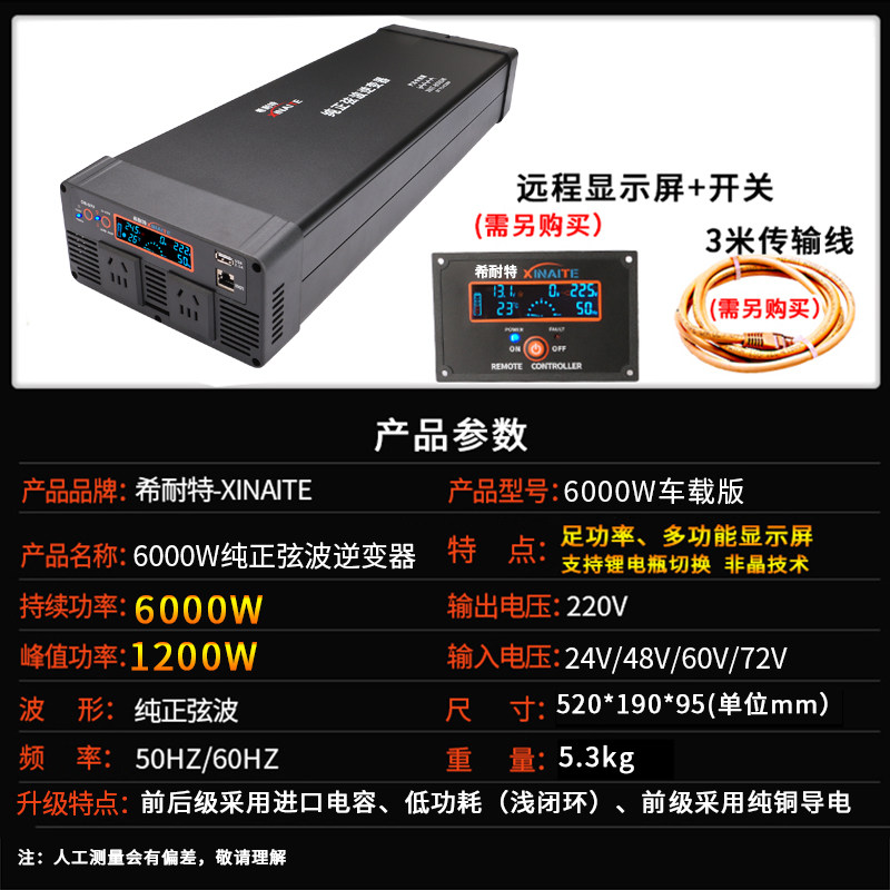 纯正弦波大功率逆变器24v48V72V转4000W5000W6000W车载家用太阳能
