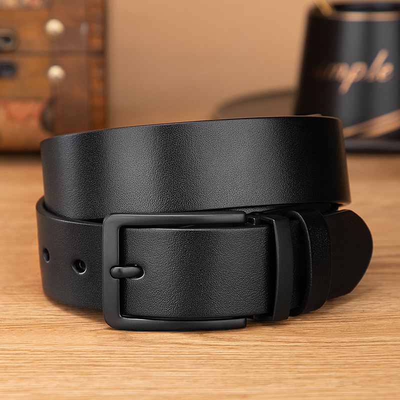 日本品质皮带男士真皮头层牛皮百搭针扣裤腰带黑色扣皮带男时尚韩