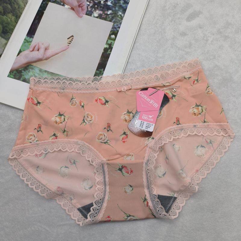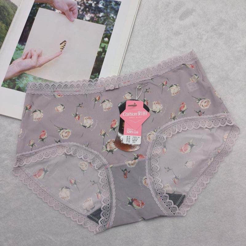 清仓彩田31693中腰平角裤冰丝印花超薄女士内裤石墨烯底档牛奶丝