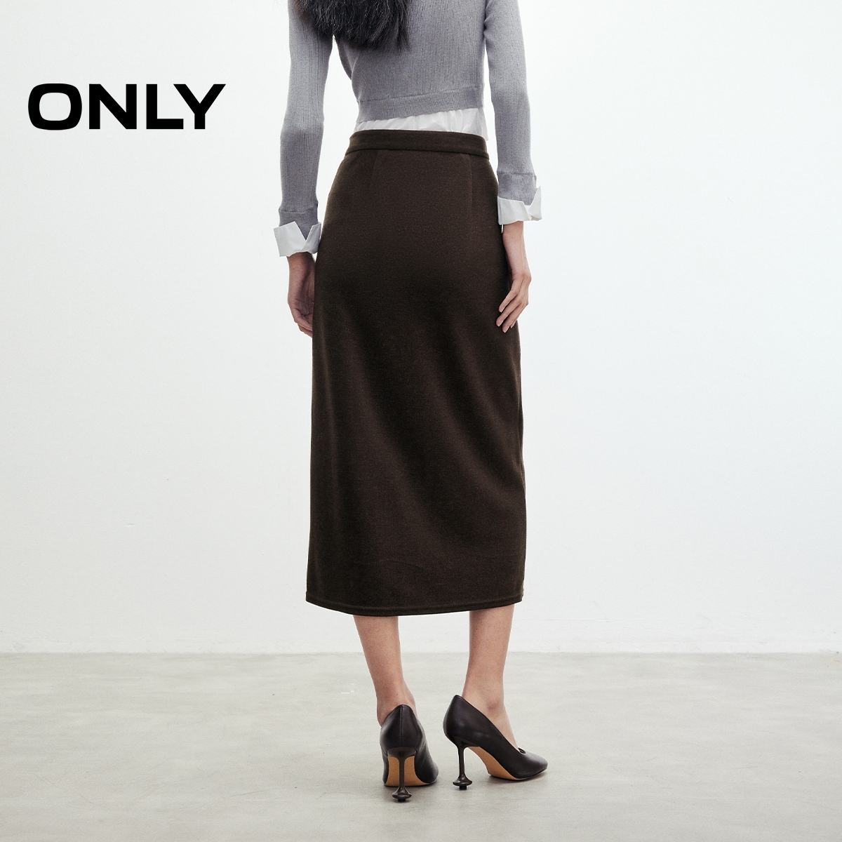 ONLY2025冬季新款时尚不规则斜搭腰头设计松弛中长裙半身裙女
